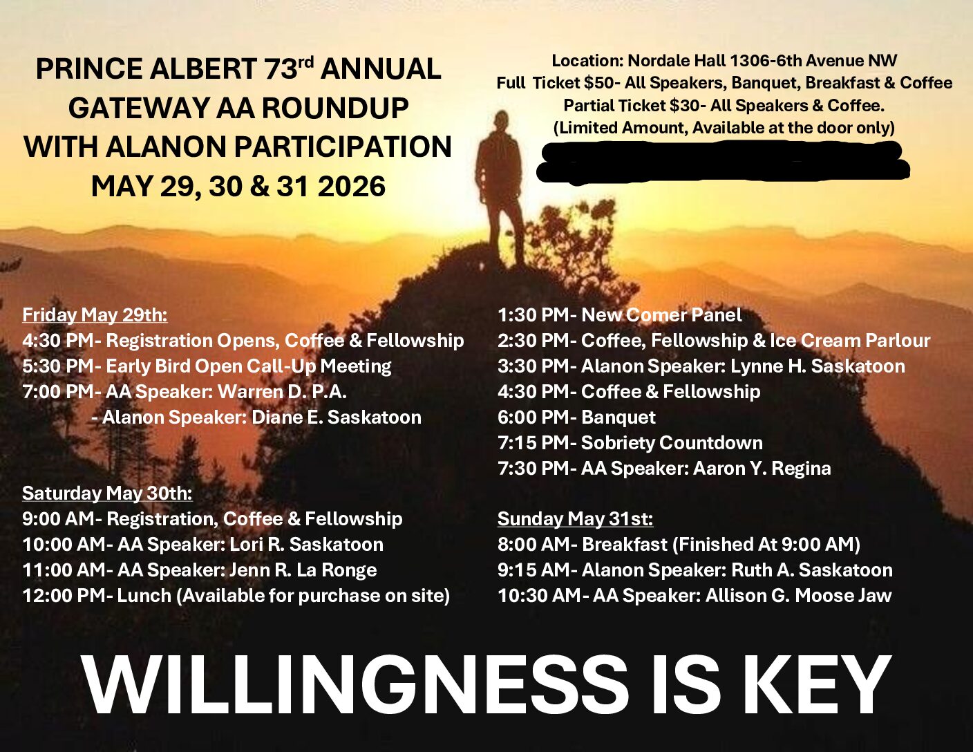 Swift Current 62nd Annual AA Round-Up with Al-Anon Participation June 6, 2026 First United Church Hall – Upper level 223 3rd Avenue NE., Swift Current, Saskatchewan SC-Round-Up-Poster-2026 |